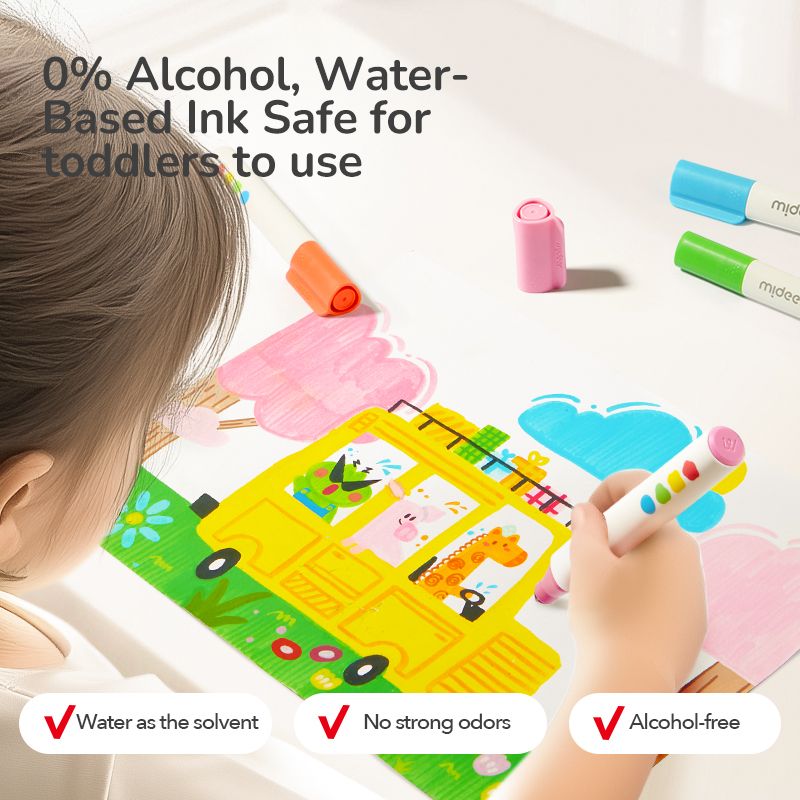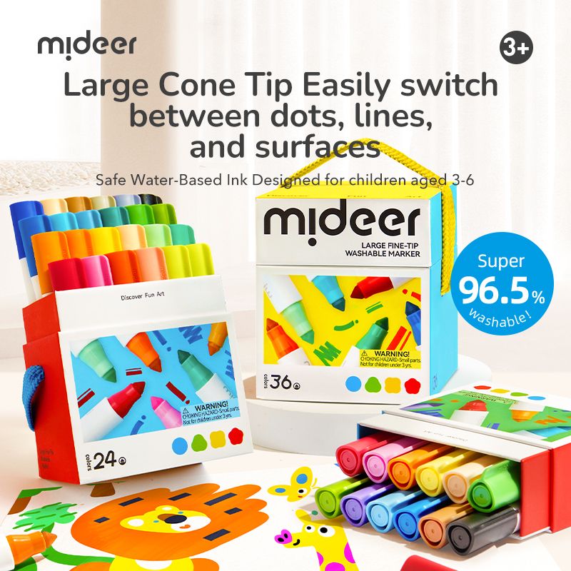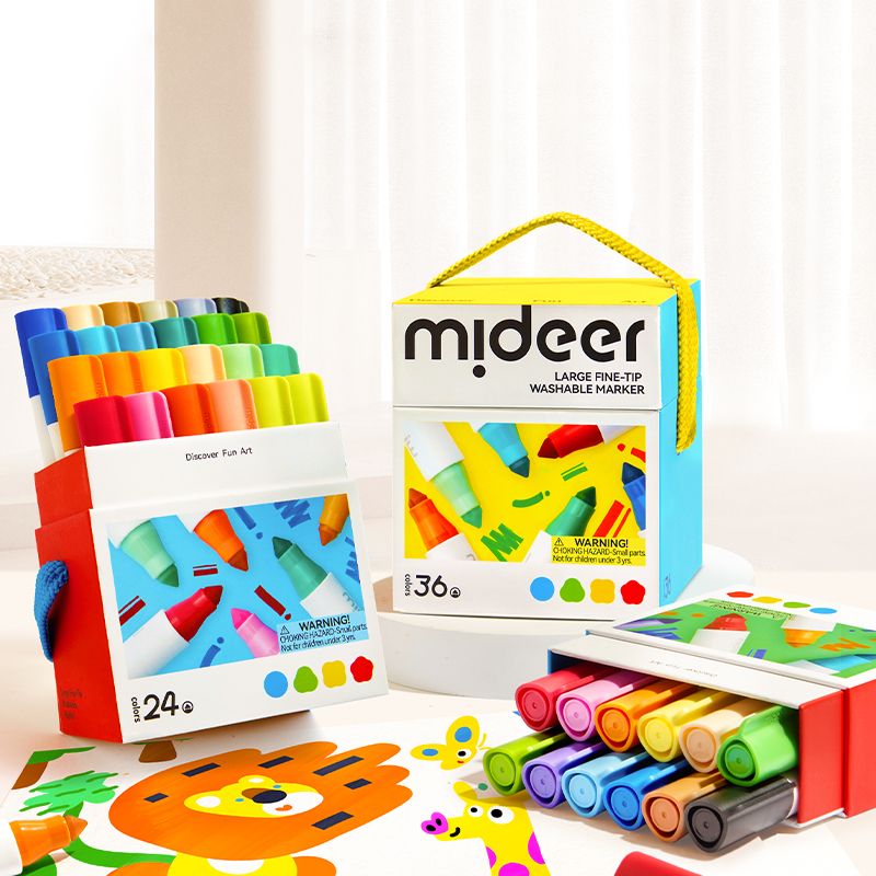 Odkryj wysokiej jakości zmywalne flamastry Mideer z delikatną końcówką, które są idealne do pierwszych dziecięcych rysunków, kolorowania i tworzenia szczegółowych projektów.