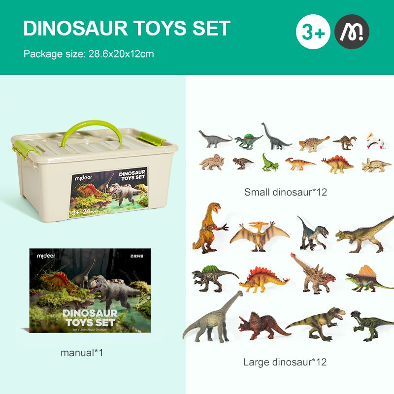 Součástí balení je 12 malých a 12 velkých dinosaurů.