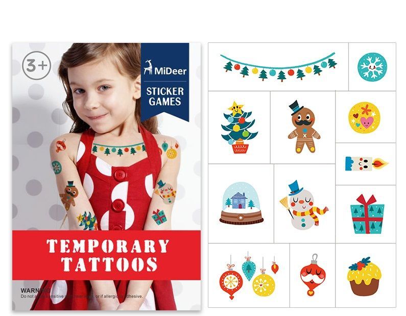 The set contains a total of 12 different tattoos of various sizes with the theme of Christmas.