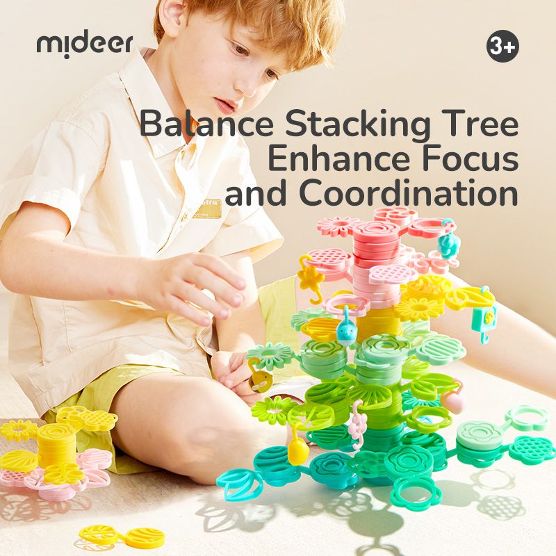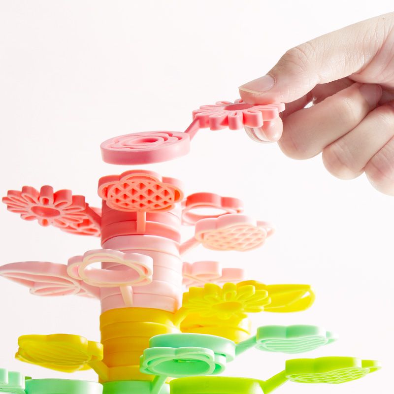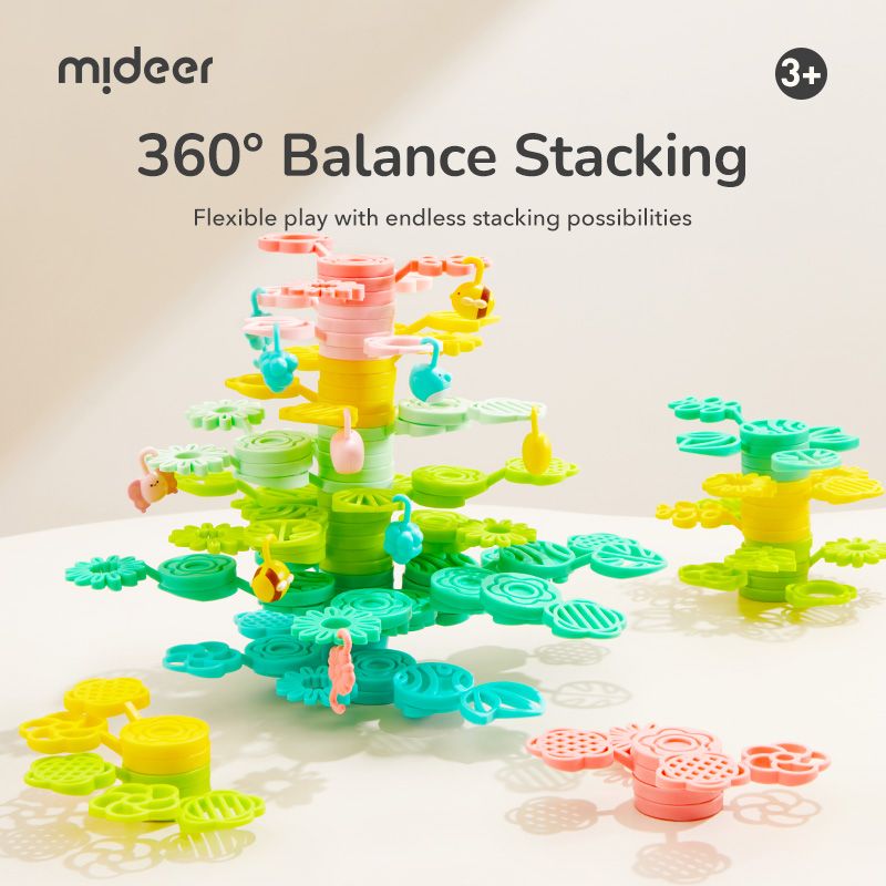 🍃 2 in 1: building set & balancing game – Children can create freely or play a competition to see who can add more pieces to the tree without it falling.