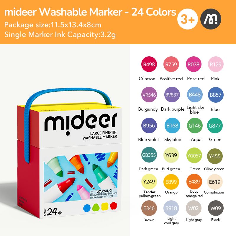 Discover high-quality Mideer washable markers with fine tips, ideal for children's first drawings, coloring, and detailed creations.