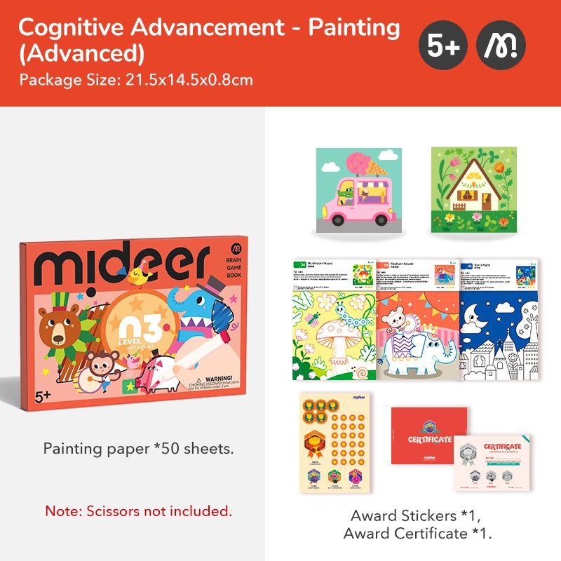 Omalovánka je tvořena 50 listy úkolů s předlohou a pracovním obrázkem — dítě vybarví vzor, dokončí obrázek, spojí body či vyplní geometrické tvary. Vše přehledně - úroveň pokročilý.