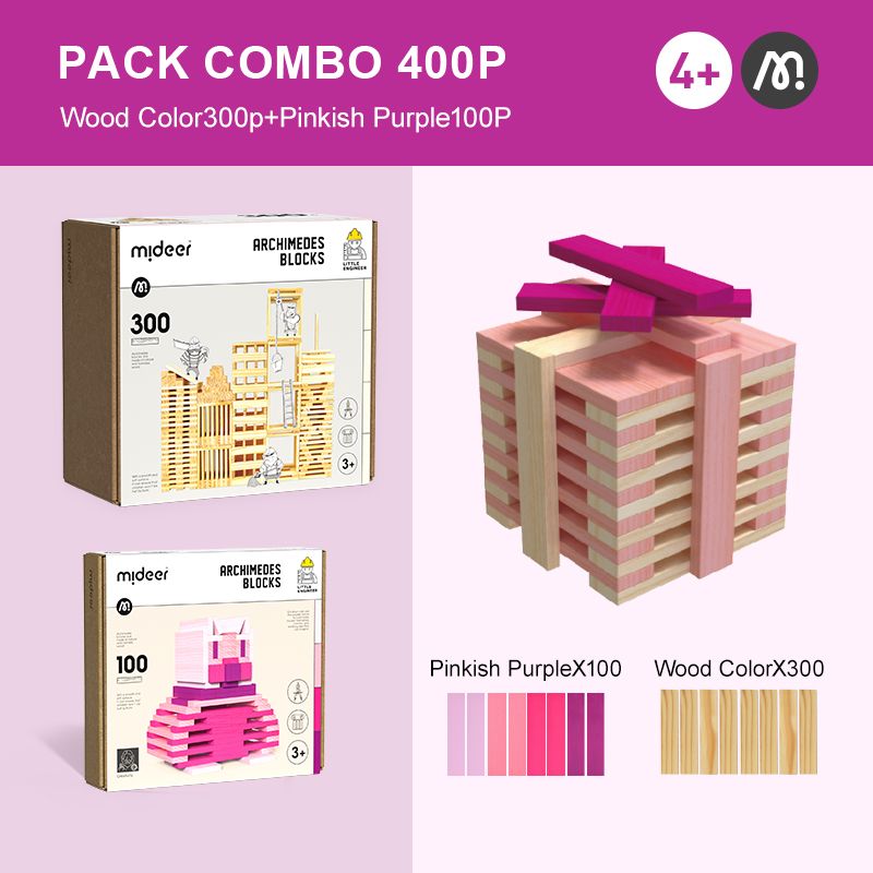 Sada obsahuje 400 pečlivě opracovaných dřevěných bloků v jednotném tvaru, což umožňuje stavět neomezené množství konstrukcí – od jednoduchých domečků přes lodě až po vysoké věže či celé městské scenérie.
