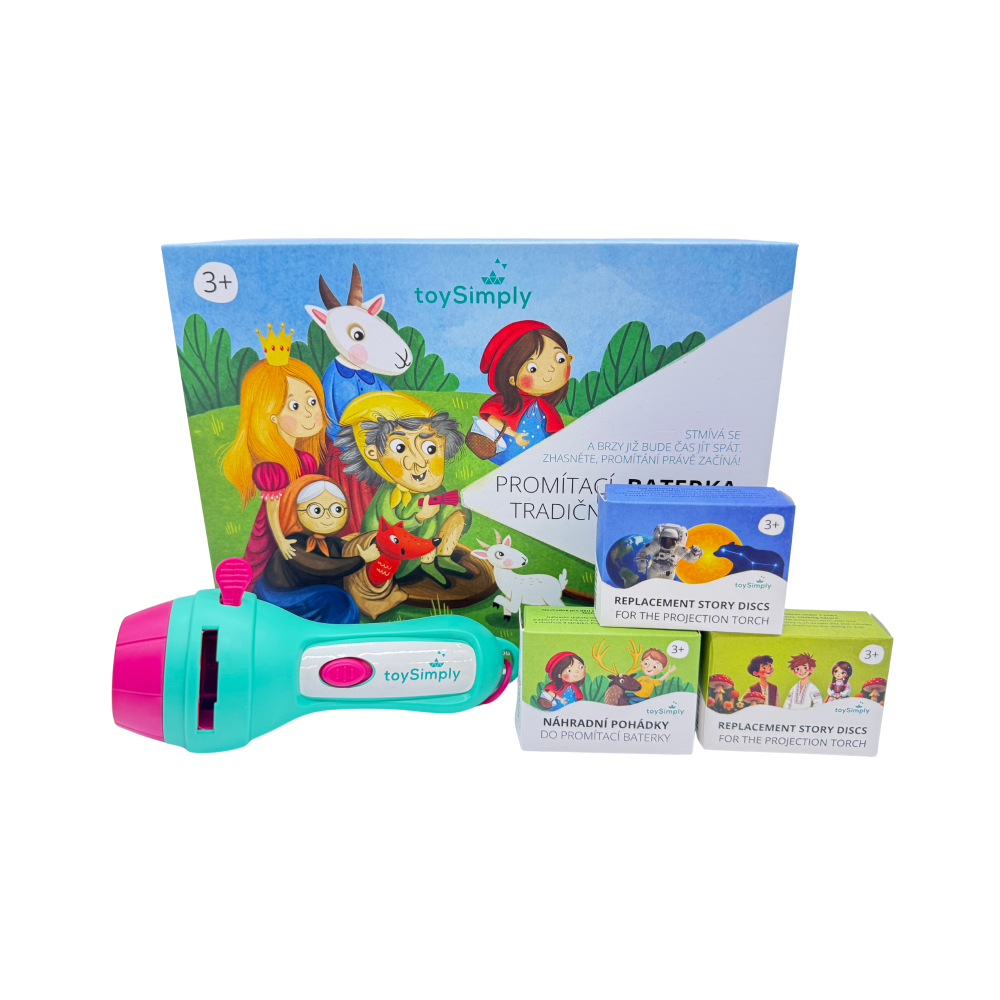 Doplňte baterku o další sady promítacích kotoučků – každá přináší nové příběhy a ilustrace. Děti si tak mohou rozšiřovat svou pohádkovou sbírku a znovu a znovu objevovat svět fantazie.