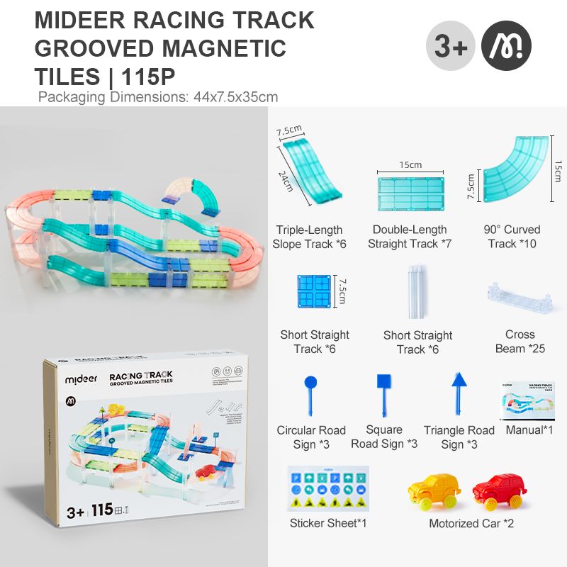 Tuto magnetickou dráhu můžete využít samostatně, ale v kombinaci s dalšími magnetickými stavebnicemi od společnosti Mideer. Můžete vytvářet i další stavby, které můžou být doplněním k závodnímu okruhu.
