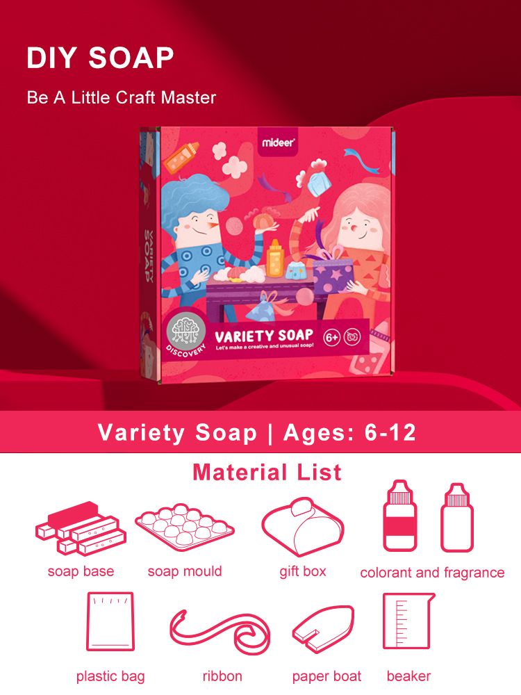 Ten kreatywny zestaw do produkcji mydła firmy Mideer to zabawna i edukacyjna zabawka, która pozwoli dzieciom i dorosłym tworzyć własne, kolorowe i oryginalne mydła.