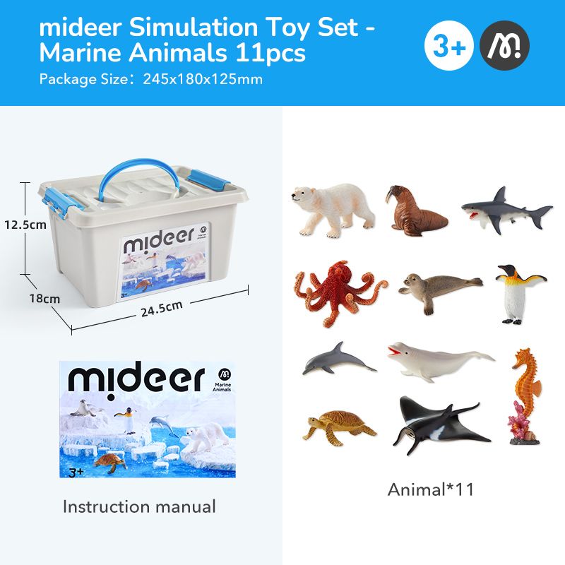 • 11 realistických figurek mořských živočichů (např. delfín, velryba, tučňák, tuleň aj.)